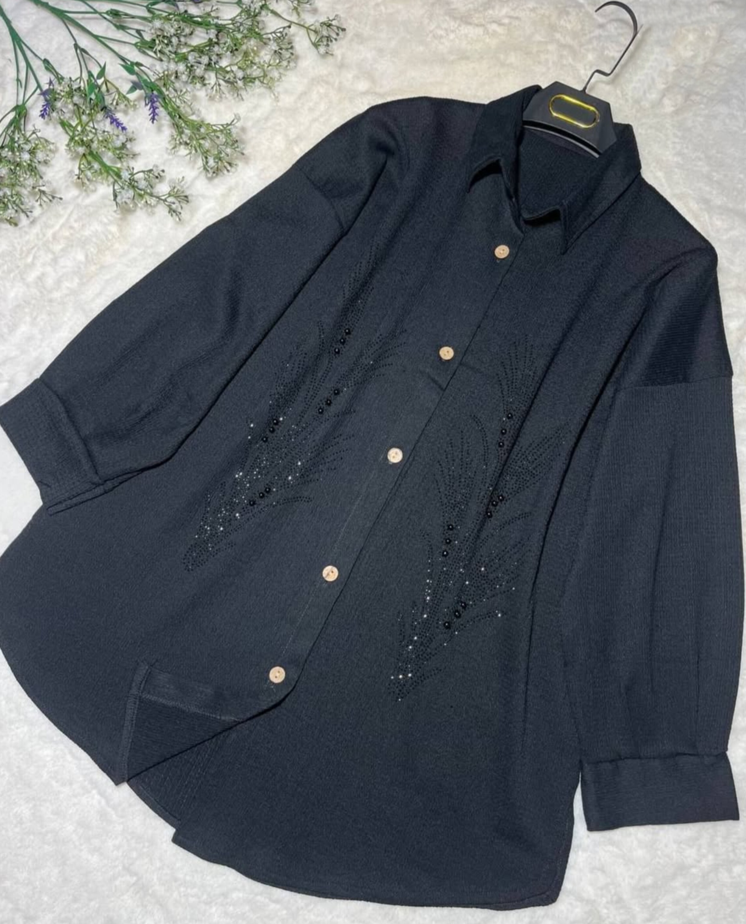 شومیز زنانه مدل یقه دار جلو دکمه جنس مراکشی سنگ دوزی شده