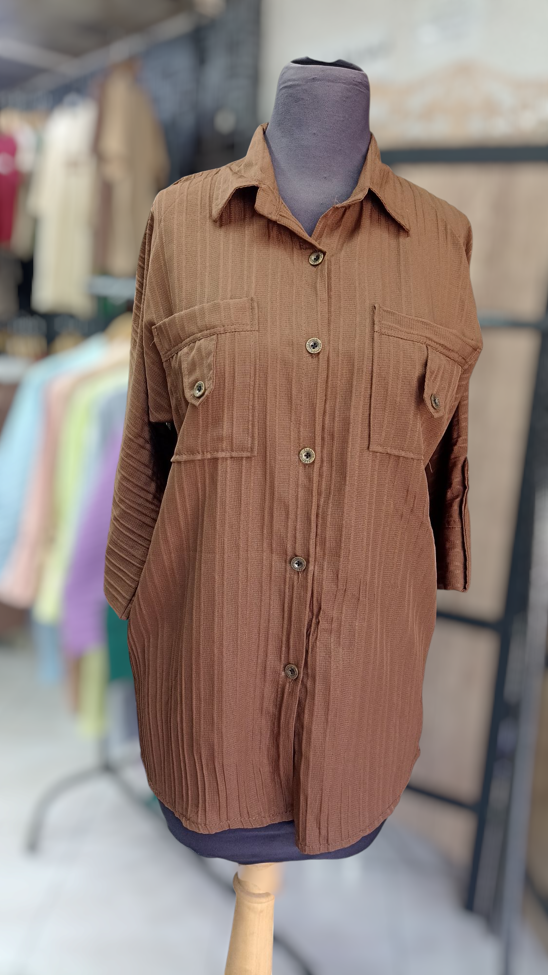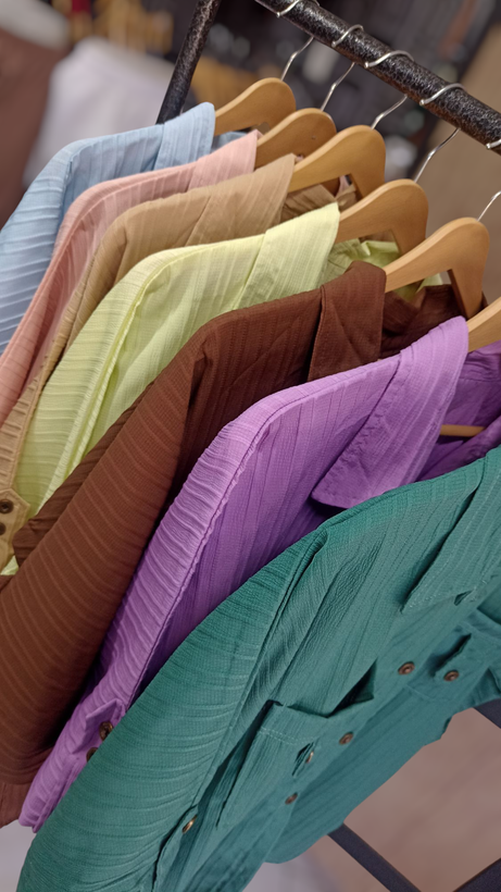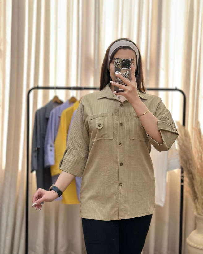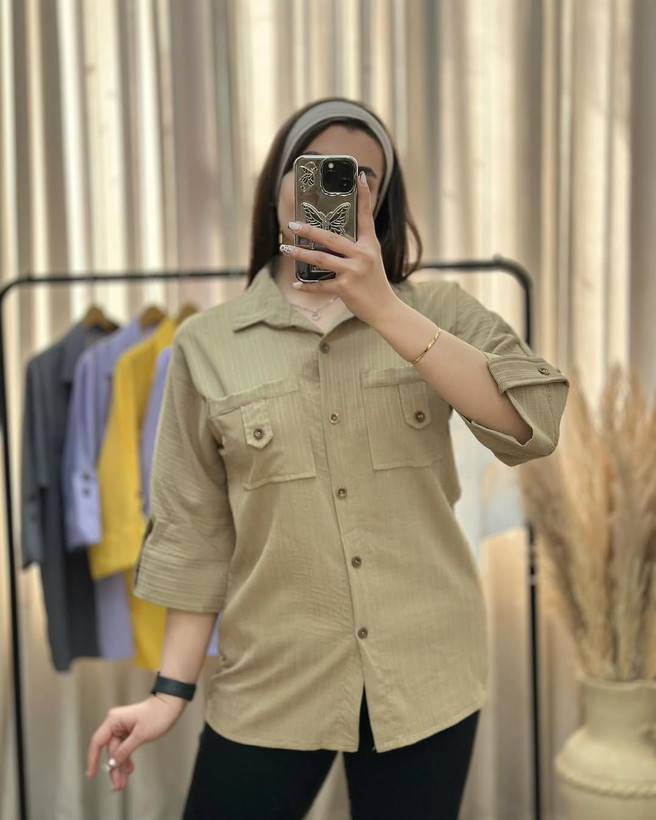 شومیزمانتویی جلودکمه جنس آیوا پارچه سبک و خنک