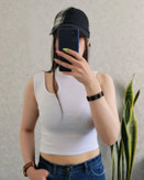 کراپ زنانه مدل یقه رومی جنس کبریتی کشی فری سایز