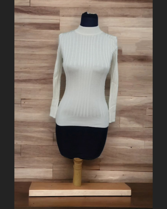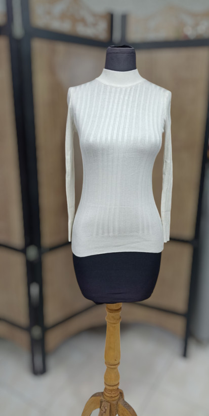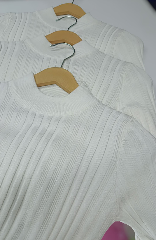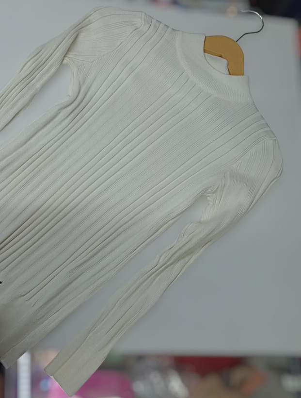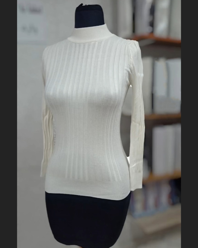 بلوز بافت زنانه مدل یقه سه سانت ریز بافت کره کره ای آستین بلند