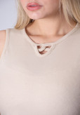 کراپ تاپ زنانه آستین حلقه ای مدل یقه گره ای جنس کبریتی کشی