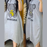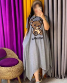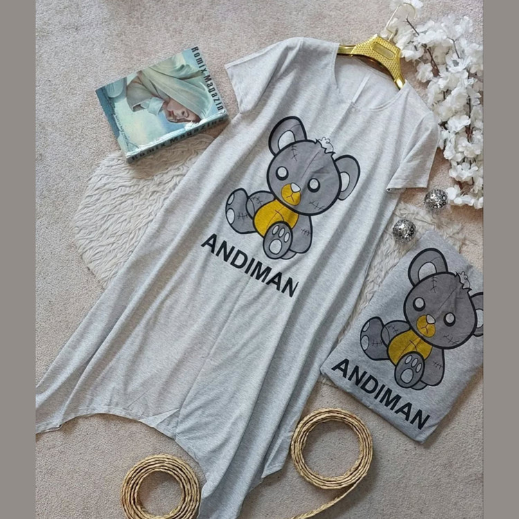 سارافون زنانه مدل آستین کوتاه جنس پنبه ملانژ طرح خرسی