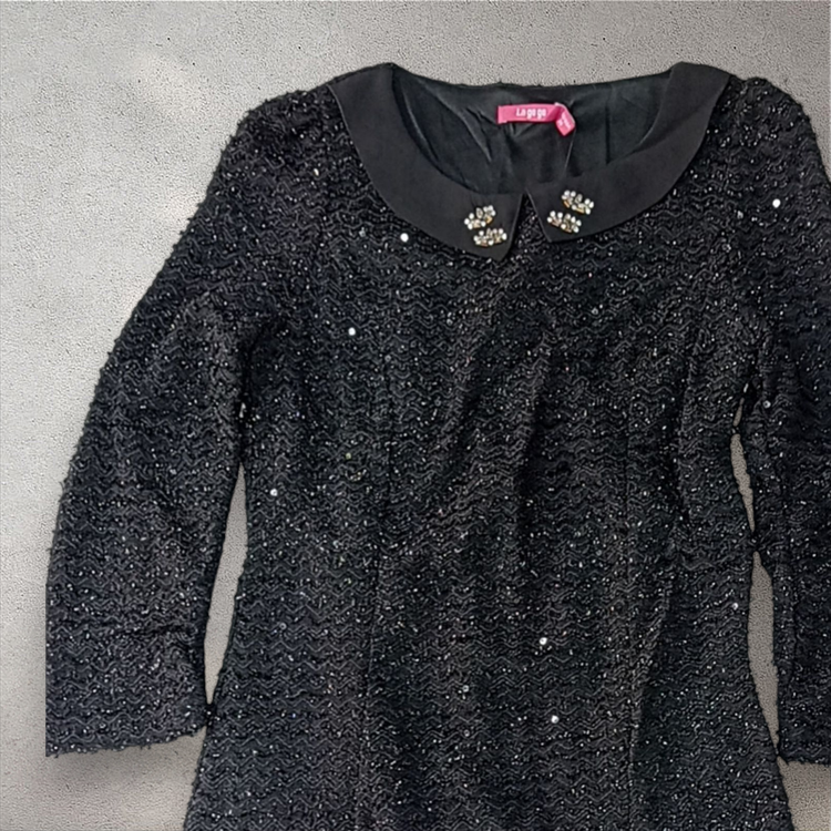 پیراهن زنانه مدل عروسکی جنس لمه و پولک دوزی وارداتی