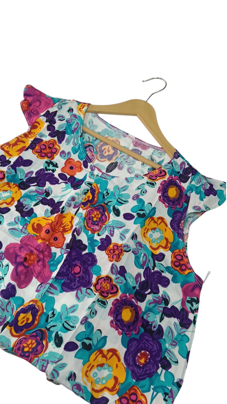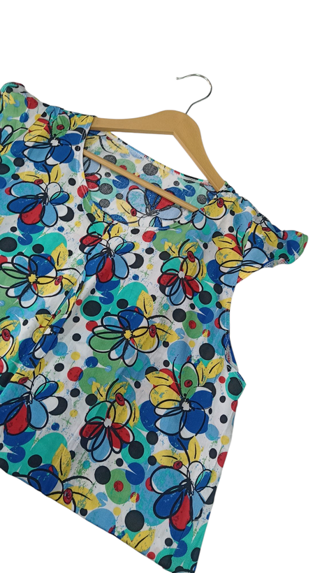 سارافون آستین فرشته ساحلی نخی زنونه خنک و تابستونی فری سایز از ۳۶ تا۴۶ آبرفت جزئی دارد رنگبندی شاد و متنوع تنخور شیک و عالی
