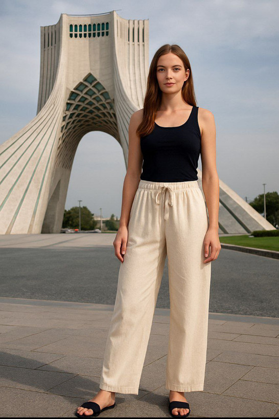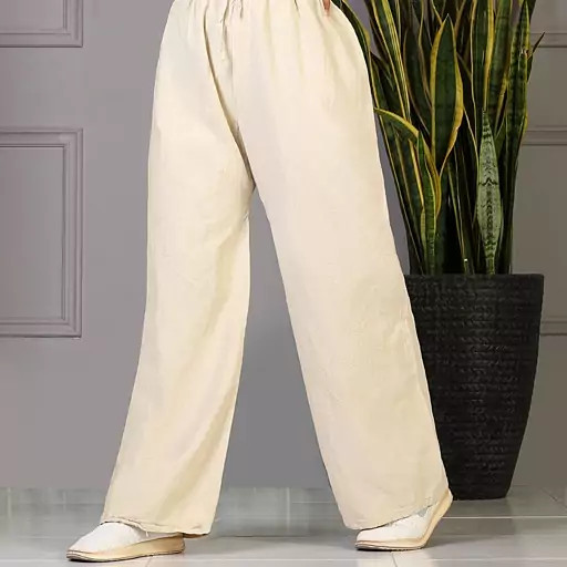اندازه و ابعاد شلوار: قد شلوار ۱۰۰ ٫ دور کمر بدون کشسانی ۶۵ ٫ فاق شلوار ۳۳ ٫ دمپا ۳۲